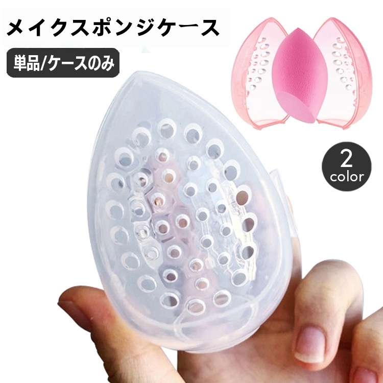 メイクスポンジケース 単品 1個 透明 クリア 卵型 たまご型 通気性 穴あき コンパクト パフケース スポンジホルダー 収納 携帯 持ち運び 旅行