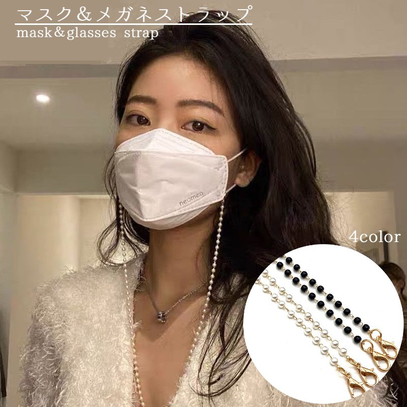 マスクストラップ マスクチェーン ネックストラップ 首かけ フェイクパール おしゃれ かわいい レディース 女性 マスクアクセサリー 金属製 眼鏡スト
