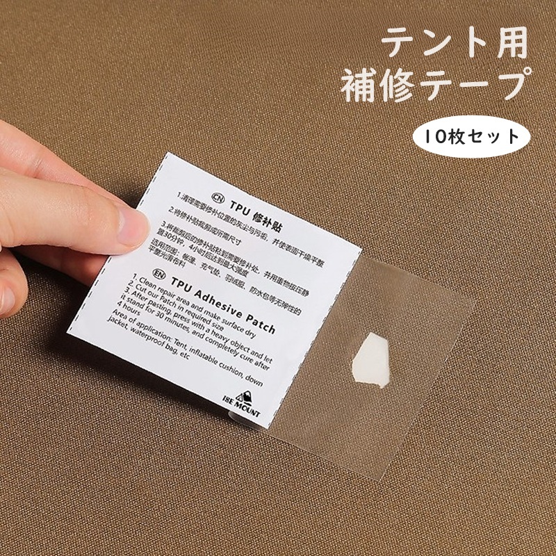 補修テープ 10枚セット テント用 修理 応急処置 アウトドア用品 クリア 透明 小さめ 正方形 防水 エアーベッド 浮き輪 トランポリン