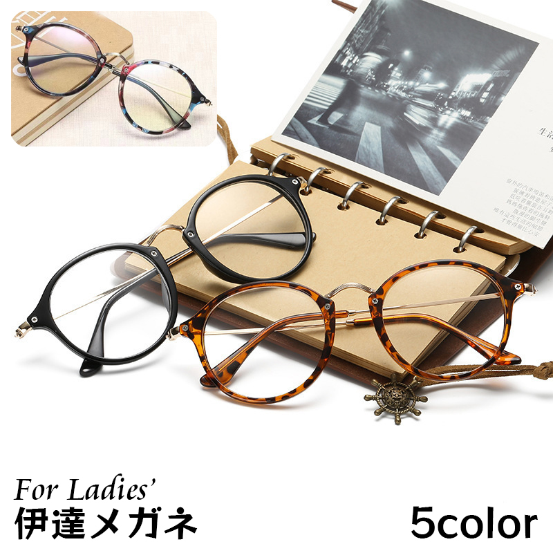 伊達メガネ だてめがね ボストン型 眼鏡 カジュアル コンビ 度なしメガネ レディース おしゃれ かっこいい かわいい プラスチック セルフレーム フ