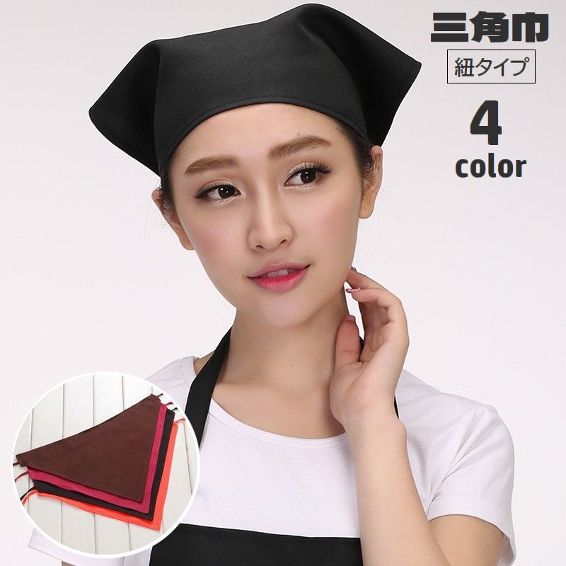 三角巾 紐タイプ レディース メンズ 男女兼用 ユニセックス 無地 ソリッドカラー シンプル 結びやすい キッチンファブリック カフェ 給食 料理教室