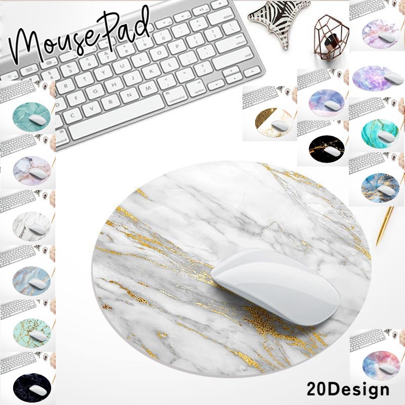 マウスパッド PC関連雑貨 パソコン関連雑貨 丸形 ラウンド型 総柄 大理石風 鉱石風 ブルー オフホワイト ブラック シンプル おしゃれ かわいい