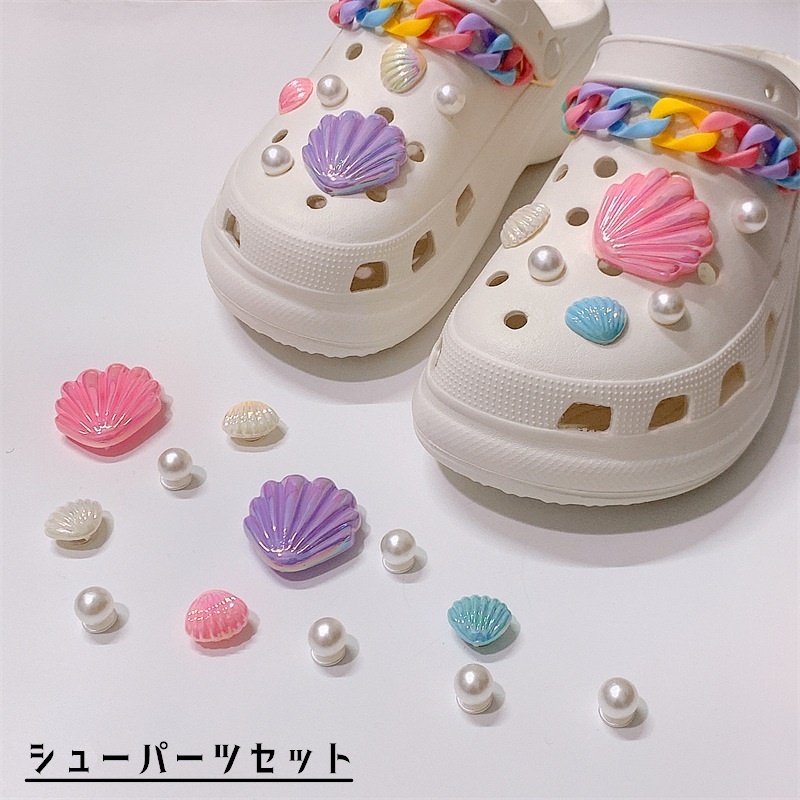 シューパーツ クロックス用 シューアクセサリー レディース シューズアクセサリー 靴アクセサリー セット 貝殻 フェイクパール チェーン カラフル パ