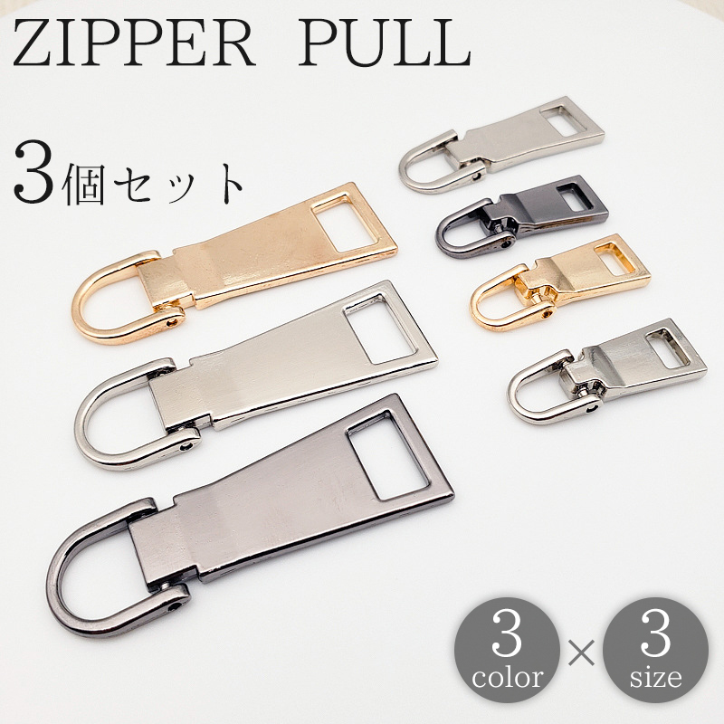 ジッパープル ジッパータブ 3個セット ファスナー プルタブ スライダー チャック シッパーヘッド 引き手 金属製 メタル 部品 付け替え 交換 修理