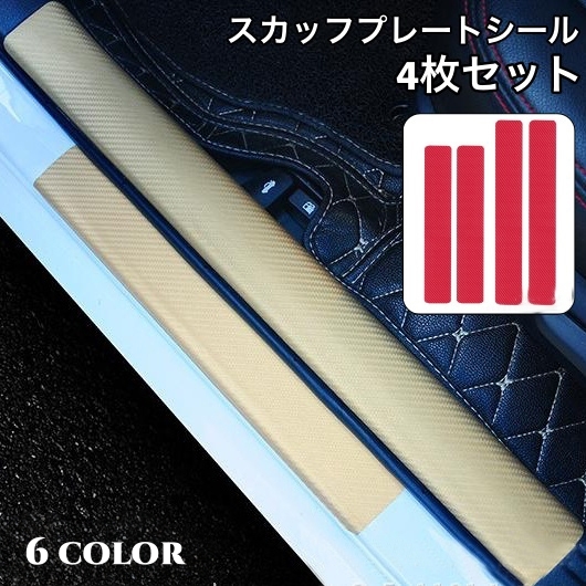 スカッフプレートシール 4枚セット 車用 ステップガード ステッププロテクター 保護ステッカー カーボン調 サイドステップ リアバンパー 車 傷 保護