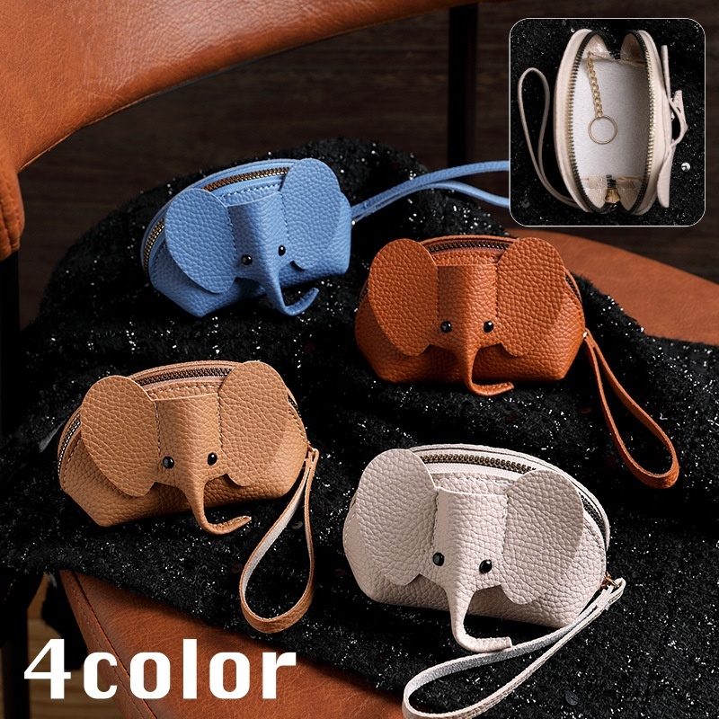 コインケース ミニポーチ ミニ財布 小物入れ レザー調 ゾウ 象 ストラップ付き キーリング付き コンパクト かわいい おしゃれ プレゼント ギフト