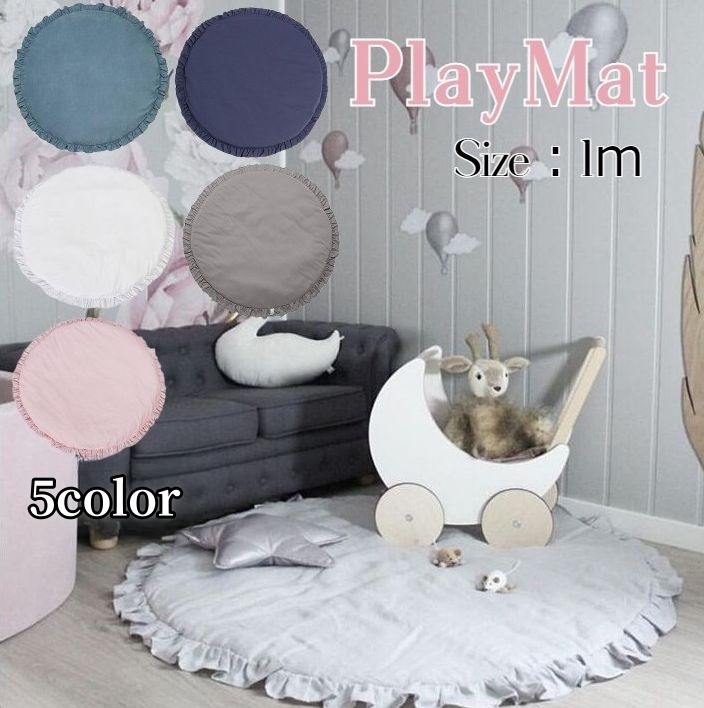 プレイマット ラグ ベビーマット お昼寝マット ベビーグッズ 男の子 女の子 円形 サークル お昼寝 1m 遊び場 ラウンド柄 フリル 無地 シンプル
