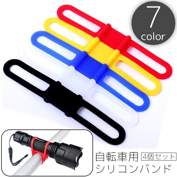 自転車用 シリコンバンド 4個セット ゴムバンド 固定用バンド 伸縮 ライトホルダー 懐中電灯 スマホ 工具 サイクル サイクリング 自転車用品 アウ