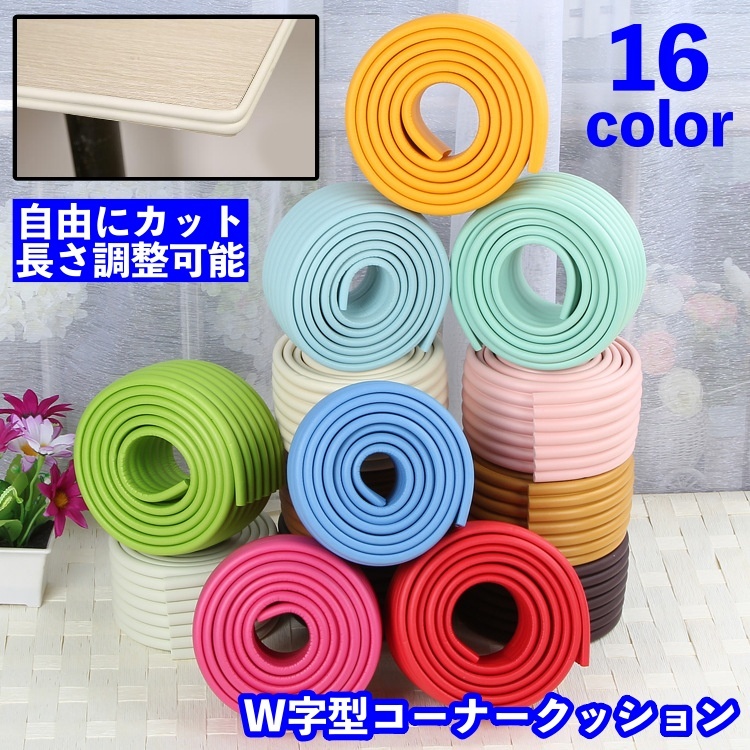 コーナークッション W字型 両面テープ付き カット可能 長さ調整可 コーナーガード エッジガード 2m 柔らかい 幅広 家具 テーブル ケガ防止 保護