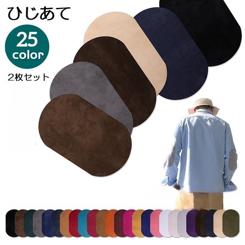 ひじあて 2枚セット 1ペア ひざあて 肘あて 膝あて ワッペン アイロン接着 補修布 補修パッチ 補強 リメイク 楕円型 無地 スエード調 シンプル