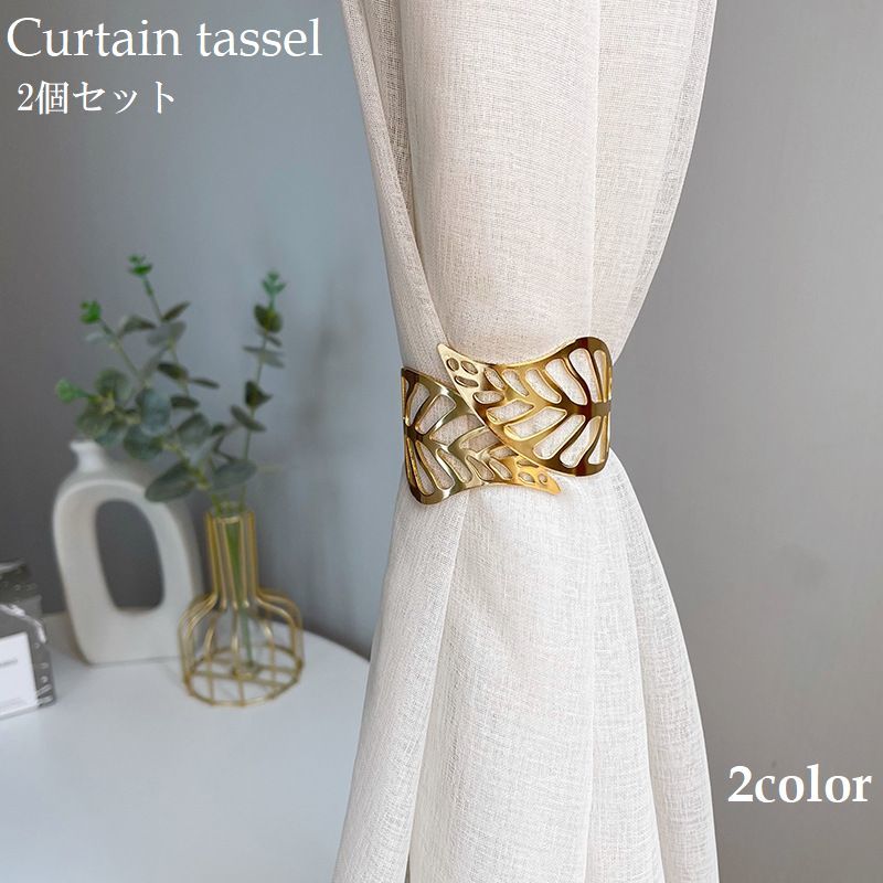 カーテンタッセル 同色2個セット カーテンホルダー カーテンバックル インテリア雑貨 カーテン用品 カーテン留め 金属製 高級感 おしゃれ ゴールド