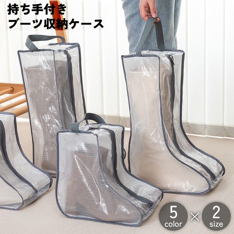 ブーツ収納ケース カバー ロングブーツ ショートブーツ レインブーツ 靴 持ち手 取っ手 半透明 袋 防塵 埃 ホコリ 防止 旅行 出張 持ち運び