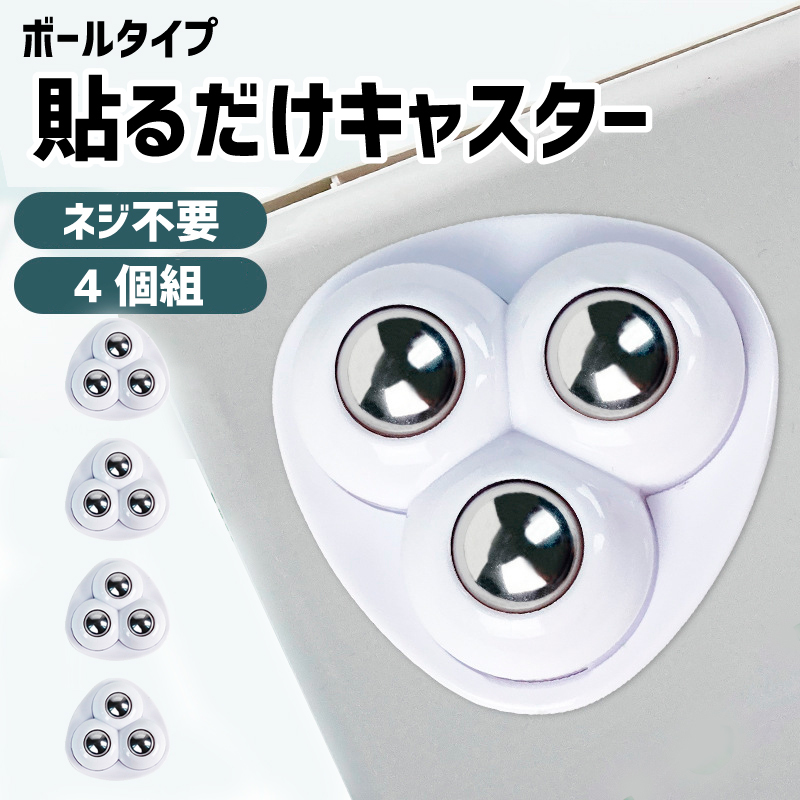 キャスター 4個セット 貼るだけ 粘着 ボールキャスター 三角形 ボールタイプ 取り付け簡単 360度回転 シンプル 家具 ボックス ケース 移動 白