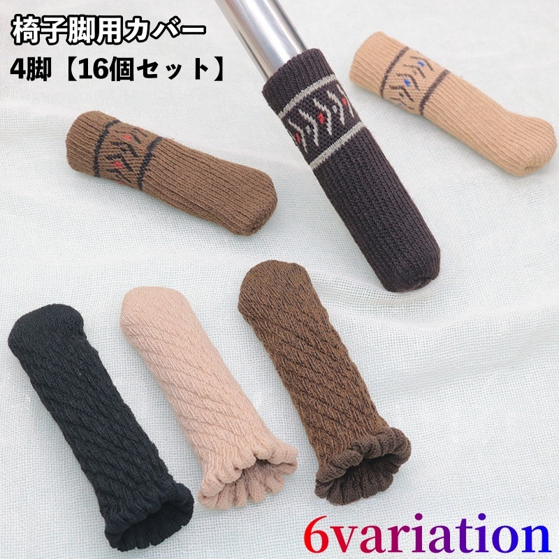 椅子脚用カバー 4脚セット 16個セット チェアソックス 傷防止 騒音防止 椅子キャップ 脚カバー いす脚靴下 ニット シンプル カジュアル 無地 柄