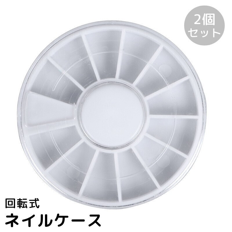 ネイルケース 2個セット 回転式 蓋付き 円形 丸型 12枠 パーツ収納 アクセサリー収納 ジェルネイル セルフネイル ネイルアート用品