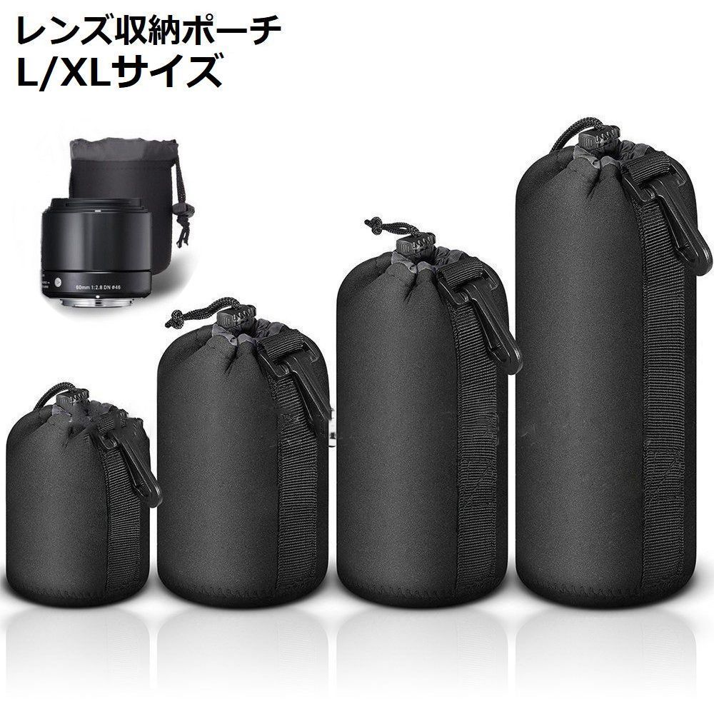 レンズポーチ L XL レンズケース 保護カバー ソフト クッション付き 収納 カメラレンズ 一眼レフ ミラーレス 耐衝撃 防水 撥水 フック付き 巾