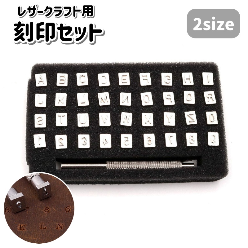 刻印セット レザークラフト 36文字 アルファベット 数字 ナンバー 3.5mm 6.5mm ハンドル ヘッド 刻印棒 打ち具 革細工 工具 道具 ツ