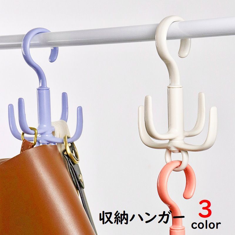 収納ハンガー 360度回転ハンガー フック付きハンガー バッグハンガー ベルトハンガー ハンガー 収納 片付け おしゃれ 便利 白 ピンク
