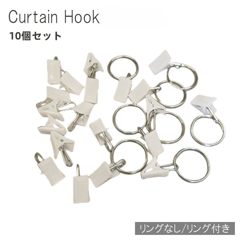 カーテンフック カーテンクリップ 10個セット カーテンライナー シャワーカーテン リング付き 暖簾 ブラインド シンプル プラスチック製 ホワイト