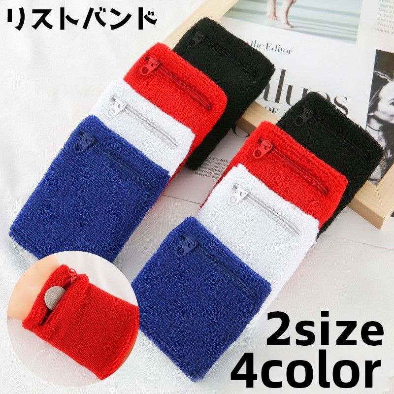 リストバンド ポケット付き レディース 女性 メンズ 男性 汗拭き 手首 ファスナーポケット 小銭入れ 小物入れ ジョギング ランニング フィットネス