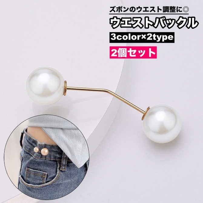 ウエストバックル サイズ調整 2個セット パール調 フェイクパール ジーンズ デニム パンツ ズボン ウエストアジャスター かわいい 簡単