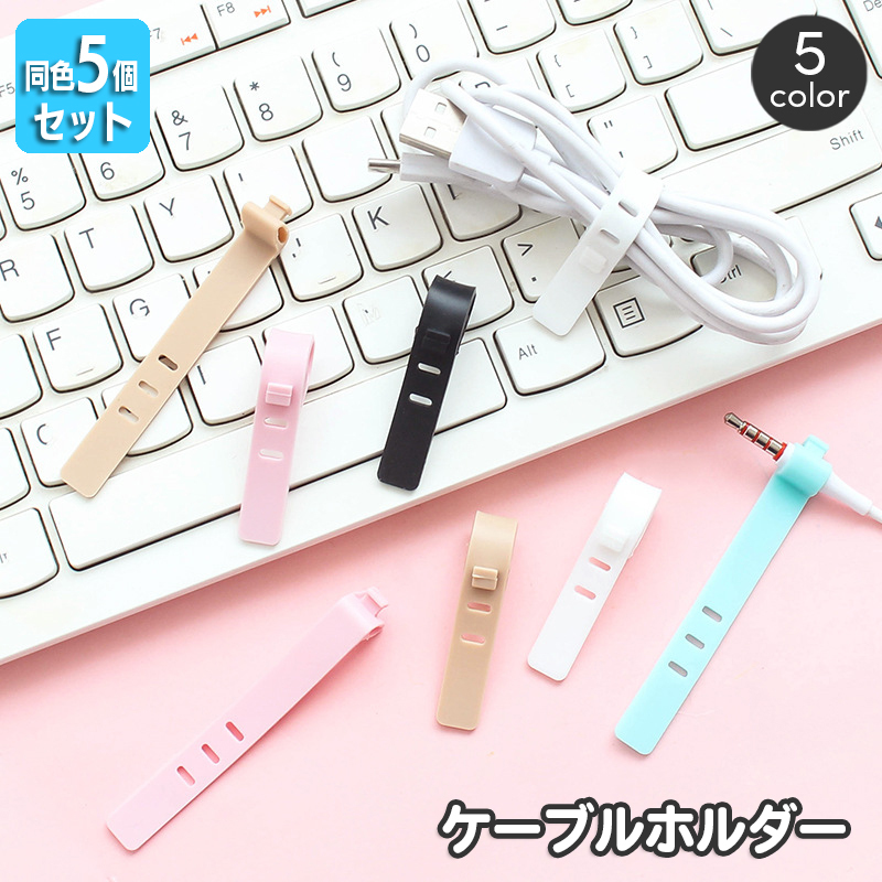 ケーブルホルダー 同色5個セット 結束バンド 整理用品 ケーブルバンド ケーブルクリップ 3穴 シリコン コード イヤホン シンプル パステルカラー