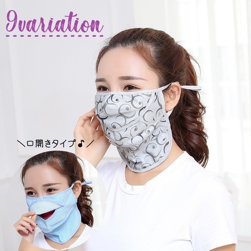 フェイスマスク フェイスカバー 口開きマスク レディース 女性 ファッション小物 便利グッズ 薄手 メッシュ 長さ調節可 ドット ウェーブ 通気性 屋