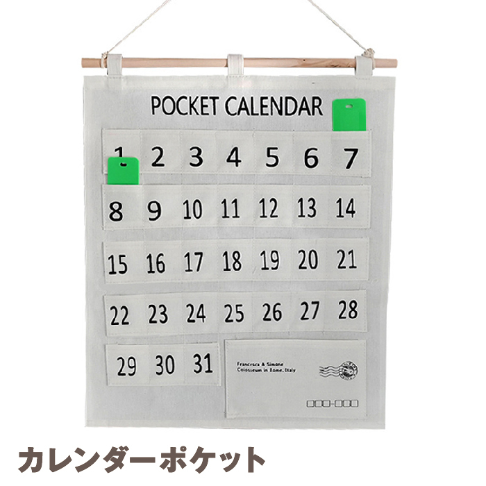カレンダーポケット ウォールポケット ポケットカレンダー 壁掛け 吊り下げ 収納ポケット 小物入れ 1ヶ月 マンスリー スケジュール お薬カレンダー