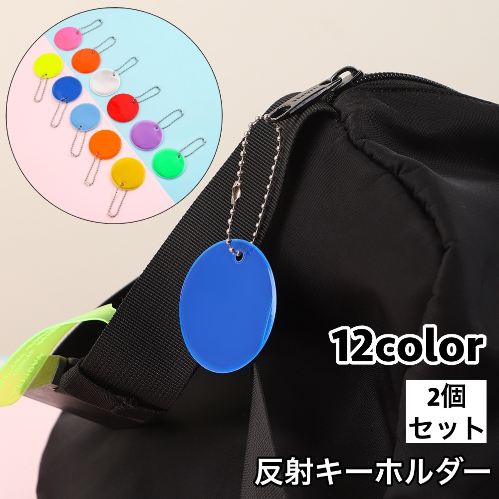 反射キーホルダー 2個セット リフレクター キーリング チャーム 光る 両面 夜間 丸 ラウンド 交通安全 安全グッズ 通学 通勤 塾 習い事 散歩