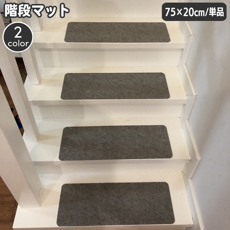 階段マット 幅75cm 単品 1枚 滑り止め 屋内 カーペット 階段クッション 傷防止 おしゃれ シンプル 無地 スタイリッシュ すべりどめ 階段用敷