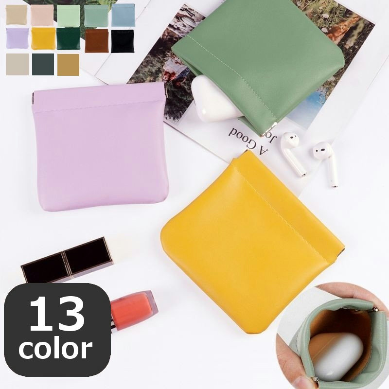 ミニポーチ バネ口 アクセサリーポーチ コインケース 化粧ポーチ イヤホンポーチ airpodsケース 収納袋 コンパクト レザー調 ミニ財布 ユニセ