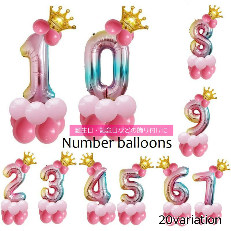 ナンバーバルーン 数字 アルミ風船 誕生日 記念日 飾り付け デコレーション 王冠 クラウン ユニコーン お子様 ペット カップル イベント パーティ
