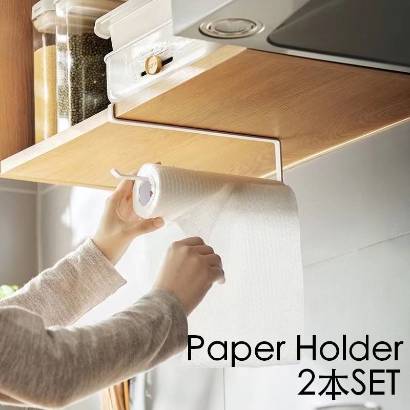 キッチンペーパーホルダー ペーパーホルダー 吊り戸棚 戸棚下収納ラック キッチンペーパーハンガー 2本SET 同色 布巾かけ ダスターホルダー ふきん