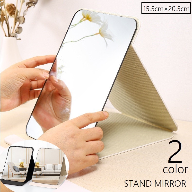 スタンドミラー 卓上ミラー テーブルミラー 化粧鏡 鏡 折りたたみ スクエア 四角 角度調節可 滑り止め 日用品雑貨 メイク鏡 持ち運び 持ち歩き 大