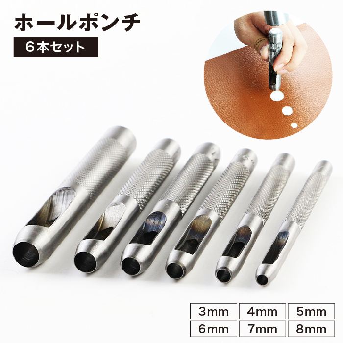 ホールポンチ 6本セット ハトメ抜き ベルトポンチ 穴あけポンチ 穴あけパンチ 皮ポンチ レザーパンチ パンチャー 打ち具 工具 DIY レザークラフ