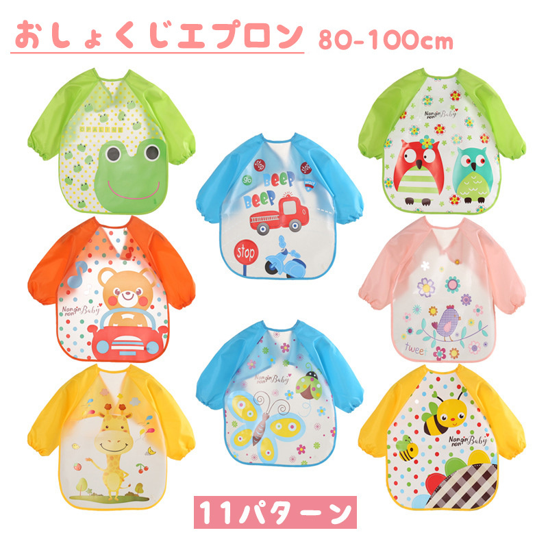 お食事エプロン スタイ よだれかけ 前掛け スモック キッズ ベビー 子供用 男の子 女の子 長袖 袖ゴム 撥水 かわいい