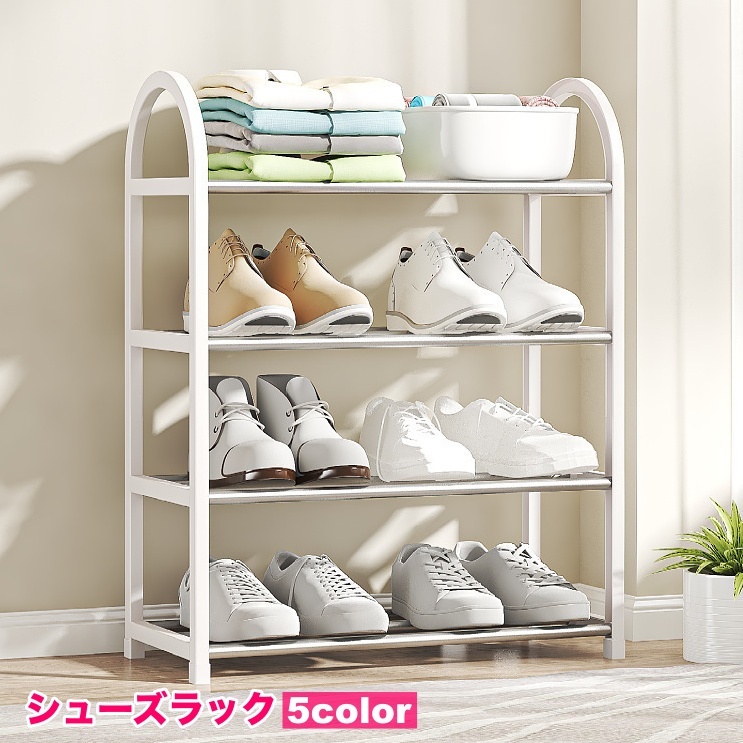 シューズラック 4段 靴置き 下駄箱 ラック シェルフ スリッパ くつ サンダル 収納 簡易式 省スペース シンプル おしゃれ ディスプレイ