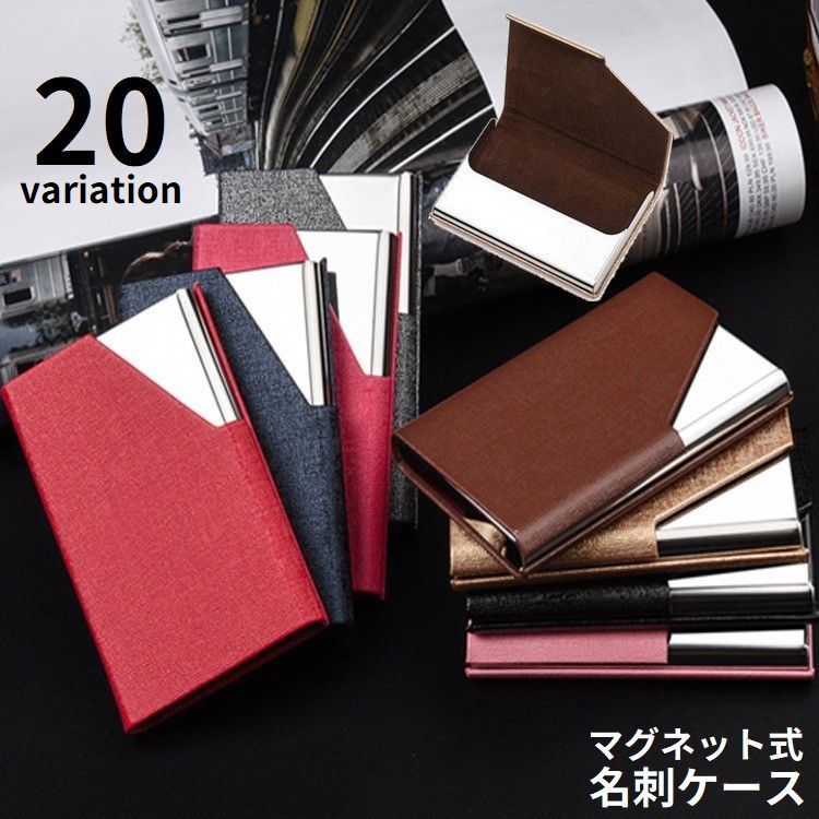 名刺入れ カードケース 男女兼用 レザー調 革風 ステンレス マグネット式 メタル ハードケース 大容量 薄型スリム 軽量 おしゃれ ビジネス 大人
