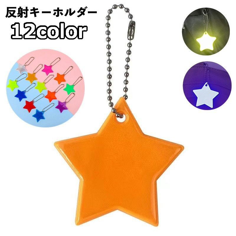 反射キーホルダー リフレクター キーリング チャーム 光る 夜間 星 スター 交通安全 安全グッズ 通学 通勤 塾 習い事 散歩 子供 大人