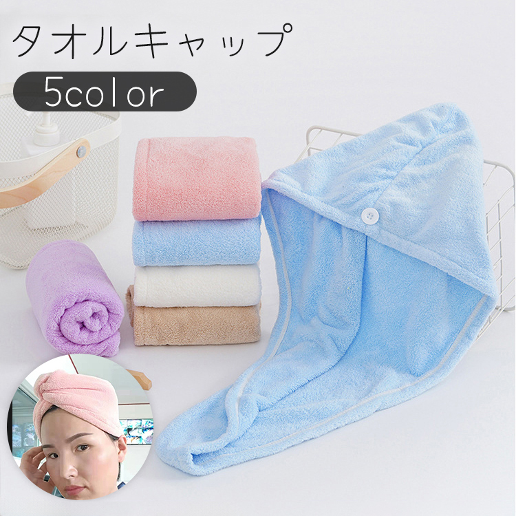 タオルキャップ ヘアキャップ ヘアタオル ドライキャップ 大人 お風呂上がり 海 プール 吸水 速乾 時短 無地 単色 シンプル バス用品