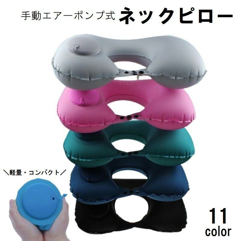 ネックピロー エアーピロー 手動プレス式 折りたたみ 旅行用品 出張 飛行機 電車 新幹線 移動 コンパクト 軽量 携帯用 空気枕 首用枕