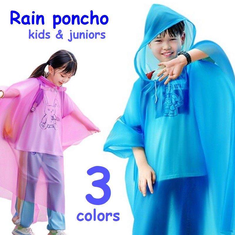子供用 レインポンチョ レインコート キッズ ジュニア レインウエア 雨合羽 プルオーバー マント型 男の子 女の子 雨具 フード付 ブルー ローズ