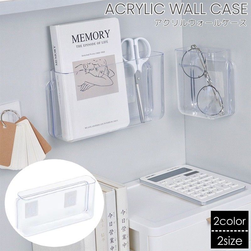ウォールケース アクリル 壁掛け収納 収納ボックス 収納ケース 小物入れ リモコンラック 粘着フック式 多用途 透明 クリア シンプル 文房具 眼鏡