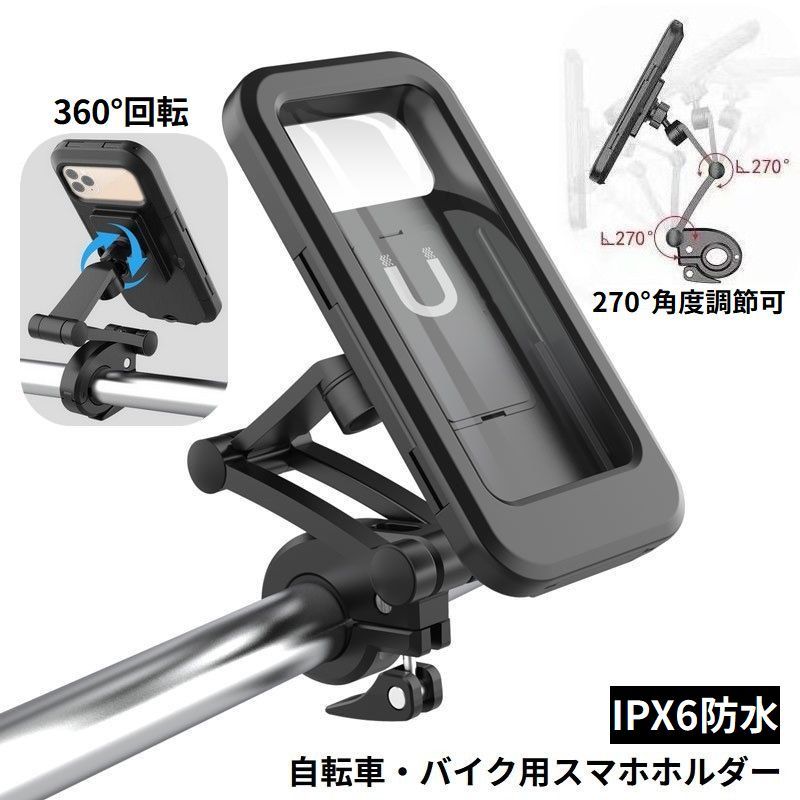 スマホホルダー 携帯ホルダー マウント スタンド ケース 自転車 ロードバイク オートバイ 防水 固定 落下防止 360度回転