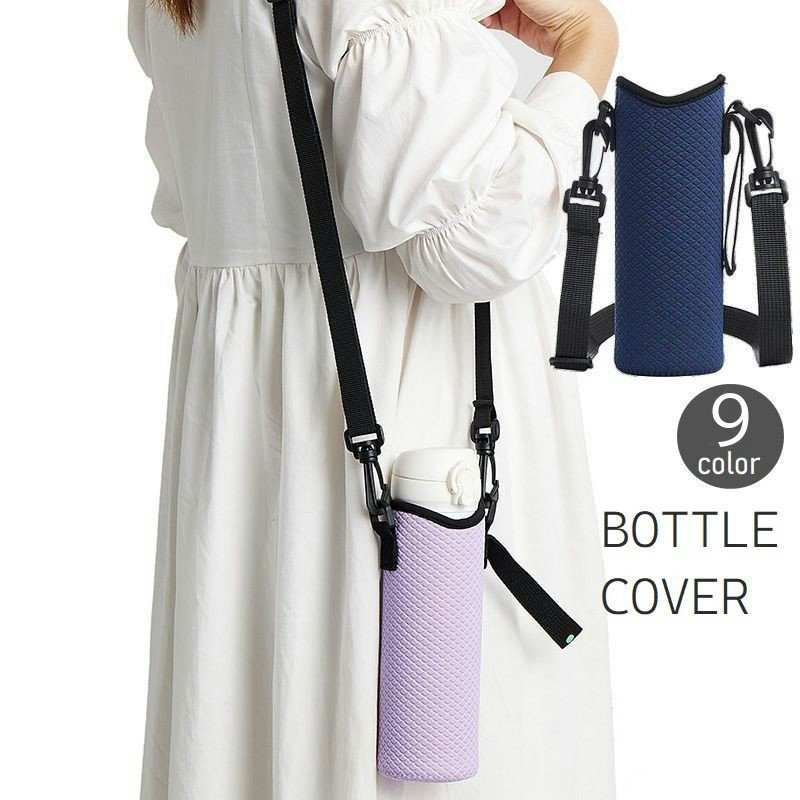 水筒カバー ボトルカバー 肩掛け ストラップ付き ひも付き 2way マイボトル 無地 エンボス 持ち運び 通勤 通学 お出かけ 遠足 シンプル おし