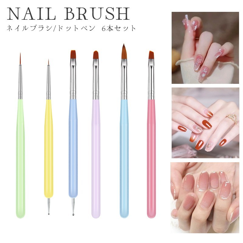 ジェルネイルブラシ ドットペン ネイルアート ライン グルー ネイル筆 ライナーブラシ ネイルブラシ 平筆 極細 6本セット ネイル用品 マカロンカラ