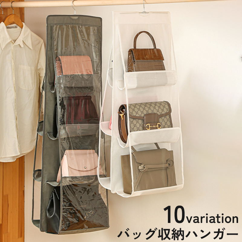 バッグ収納ハンガー ラック 鞄 カバン 吊り下げ収納 透明窓 クリア 防塵 クローゼット 省スペース 整理 整頓