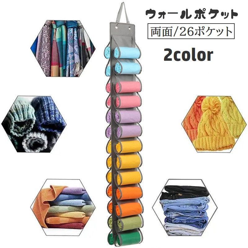 ウォールポケット 両面収納 26ポケット フック付き 壁掛け 吊り下げ メッシュ 通気性 オックスフォード 省スペース 整理整頓 スッキリ タオル 衣