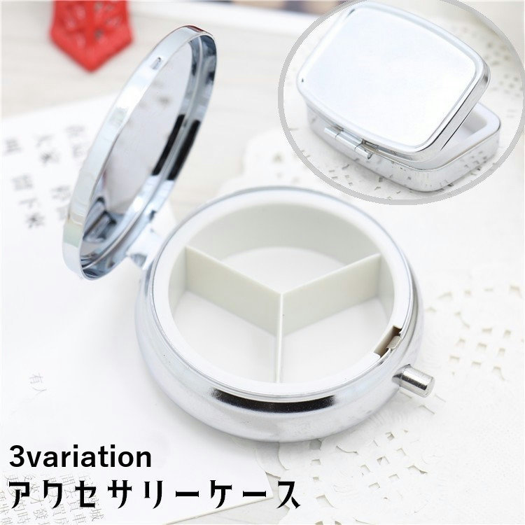 アクセサリーケース コンパクト ミニサイズ 持ち運び 携帯 小物入れ 仕切り付き インテリア雑貨 円 サークル 四角 スクエア ボタン ワンタッチ D