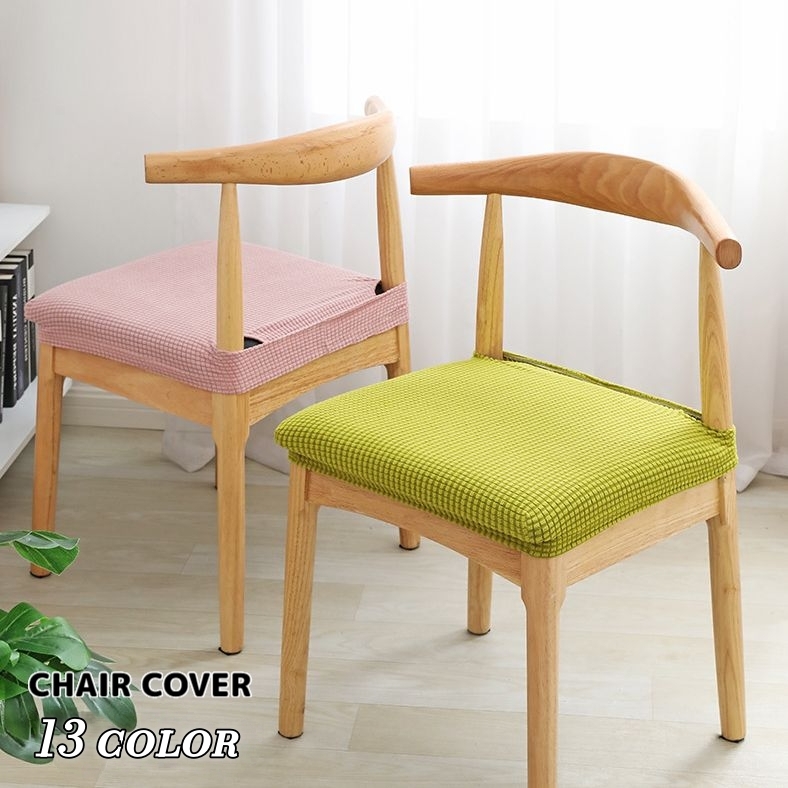 チェアカバー 椅子カバー 座面 無地 伸縮性 ストレッチ 四角 格子柄 シンプル おしゃれ ダイニングチェアカバー 模様替え 汚れ防止 傷防止 インテ